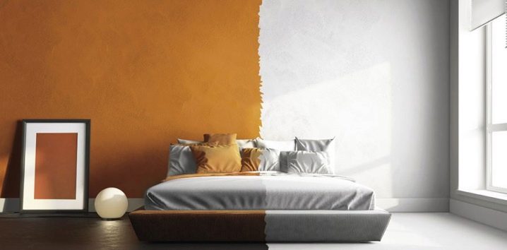 Deshalb bedeckt eine solche Farbe nicht nur die Wände, sondern auch einige Elemente der Möbel. Es ist sehr teuer und gleichzeitig sehr stabil und praktisch. Erworben für interne und externe Arbeiten.