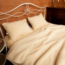 Merino Schafwolle enthält eine einzigartige Komponente - Lanolin. Wenn die Decke unter dem Einfluss der Körpertemperatur erhitzt wird, dringen mikroskopisch kleine Partikel dieser Substanz in die Haut und dann in das menschliche Blut ein und tragen zur Verbesserung des Körpers bei. Deshalb empfehlen wir die Decken aus diesem Material für Menschen mit Erkrankungen der Gelenke, die zu Schwellungen neigen, Probleme mit dem Kreislaufsystem. Sie sind auch gut für Sportler, da sie helfen, übermäßige Muskelspannung zu bewältigen und Schmerzen zu lindern. Eine der bemerkenswerten Eigenschaften einer solchen Decke, die Frauen anspricht, ist der Kampf gegen Orangenhaut und Hautverjüngung.