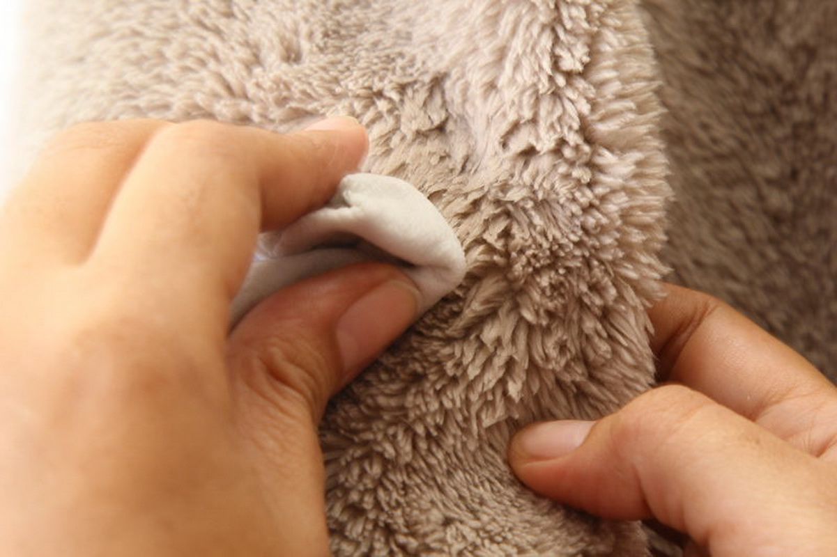 Wenn der Spot klein ist, versuchen Sie es selbst zu holen.Mit Seife und Wasser etwas befeuchten, sanft einreiben, restliches Waschmittel entfernen und gut abtrocknen. Schütteln Sie die Decke mehrmals.