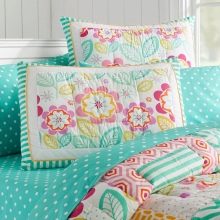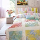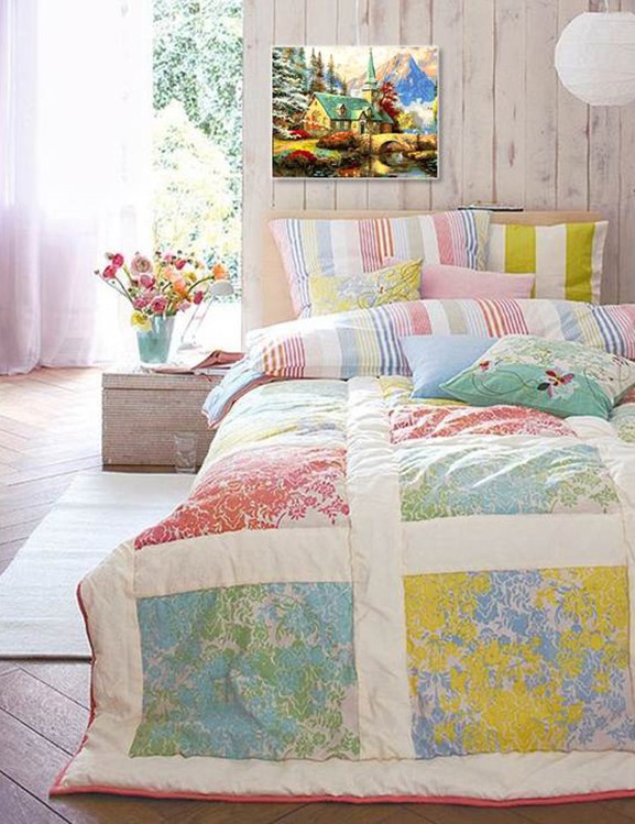 Einfarbige und bunte Stoffe können sich abwechseln, so dass das Gesamtbild der Decke noch markanter wird.