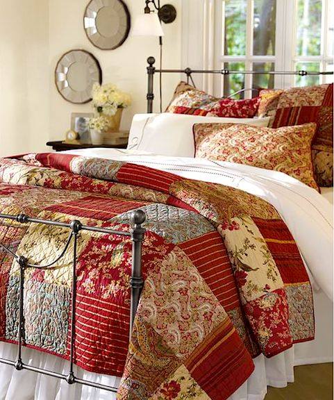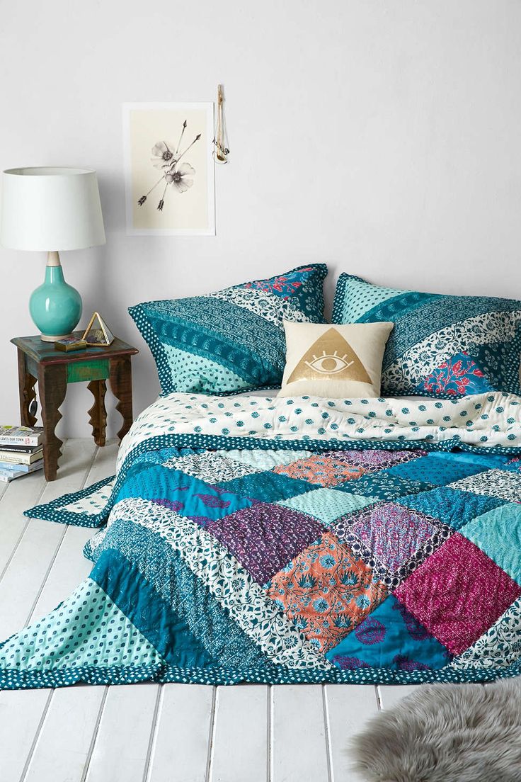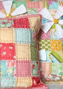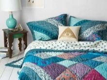 Patchworkdecken können mit Kissen im gleichen Stil kombiniert werden - solche Sets sehen immer harmonisch aus. Hier sind ein paar Ideen für Interieurs mit Patchwork.