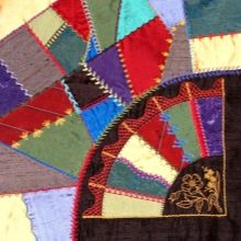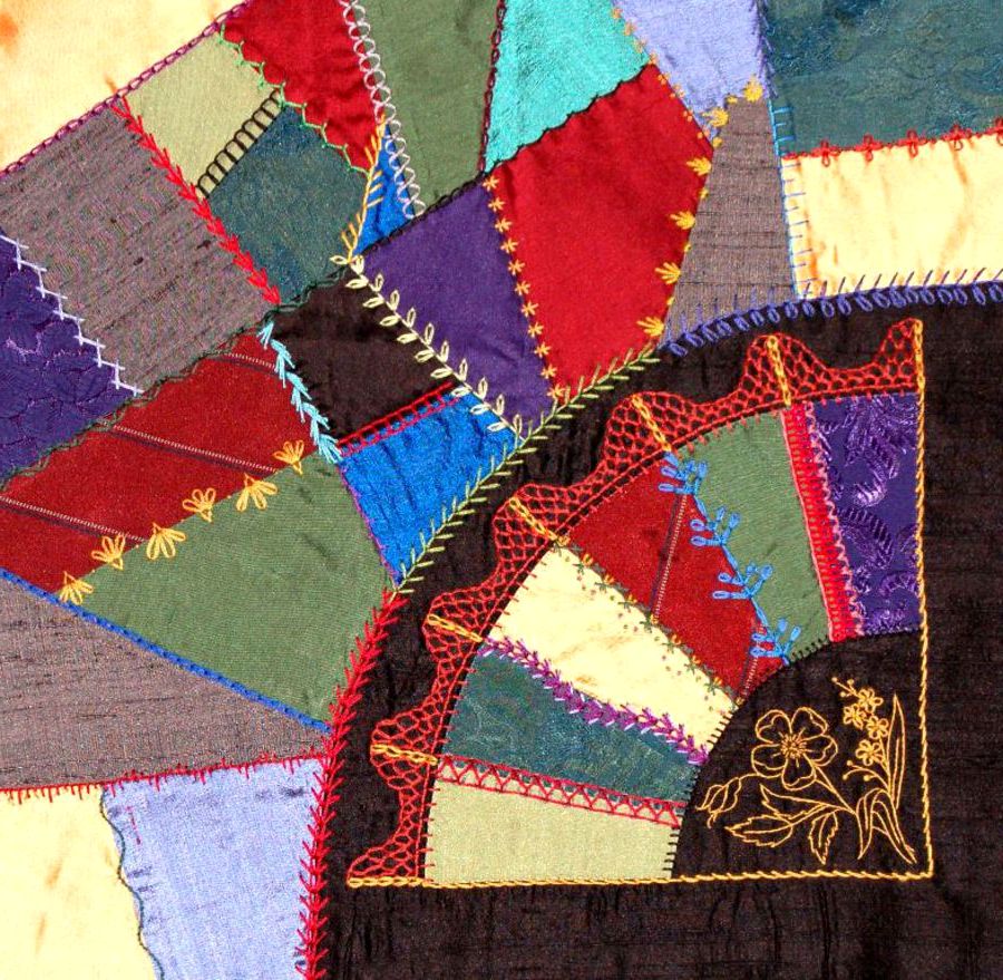 - Die nächste Technik wird aufgerufen "Verrücktes Patchwork", oder verrückte Fetzen. Das Prinzip des Nähens ist das gleiche wie beim traditionellen Patchwork. Der einzige Unterschied ist, dass diese Technik Fetzen von völlig unterschiedlichen Formen und Größen verwendet. Sie können krumm sein, klein, groß, haben viele Ecken oder haben sie überhaupt nicht. Decken in dieser Technik können mit mehr Stickereien, Bänder, Pailletten, Knöpfen, Perlen, Perlen oder das Geflecht verziert werden, die in der Regel über die Naht aufgebracht wird, um sie zu bedecken.