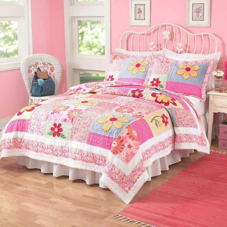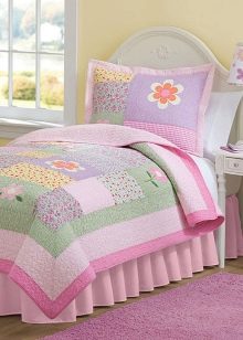 - Für Mädchen Sie können rosa, rot und lila Töne verwenden. Auf einer Decke kann ein Bild von einer Lieblingspuppe oder einem Bären sein, genau das wird einer kleinen Prinzessin gefallen. Bei der Gestaltung des Kinderzimmers können Sie einen Druck für alle Textilien im Raum wählen: für Vorhänge, Bettwäsche und Polster von Polstermöbeln oder Kinderstühlen. Patchwork eignet sich auch zum Erstellen von Attributen für Spielzeug. Sie können beispielsweise eine Patchworkdecke für eine Puppe erstellen, die das Muster der Decke des Mädchens wiederholt.
