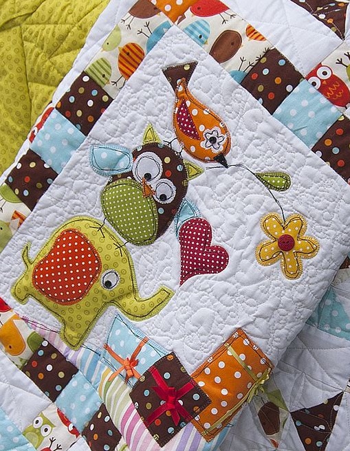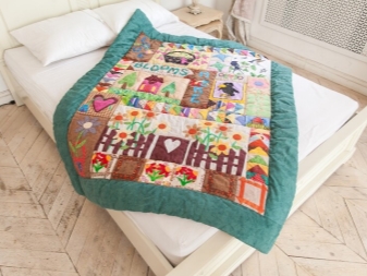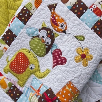 Patchwork beschränkt die Meister nicht auf die Auswahl eines Musters. Neben der üblichen Geometrie können Sie ganze Stoffanwendungen erstellen. Zum Beispiel können Sie auf die Decke Bilder der Charaktere Ihrer Lieblingsbücher und Filme legen. Für Kinderdecken können Sie Bilder beliebiger Zeichentrickfiguren verwenden. Das Kind wird diese kreative Leinwand lieben.