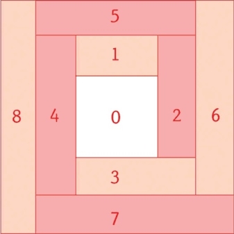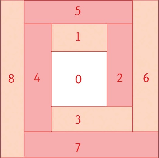 Eine Vielzahl von traditionellen Patchwork ist die Technik des "American Square". Es verwendet auch rechteckige und quadratische Formen von Stoff, aber sie sind nach einem bestimmten Muster gebaut.