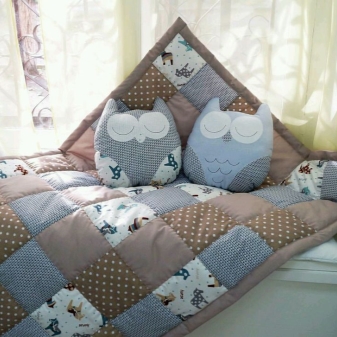 - Die Kombination von Patches hilft dabei, das ursprüngliche Muster zu erreichen. Strickwaren oder Kindersachen. In der Regel werden Dinge für Kinder aus bunten hellen Stoffen gemacht. Oft haben sie ein fröhliches und einzigartiges Muster, und solche Drucke eignen sich sehr gut für eine helle Decke. Diese werden aus Gewirken erhalten.