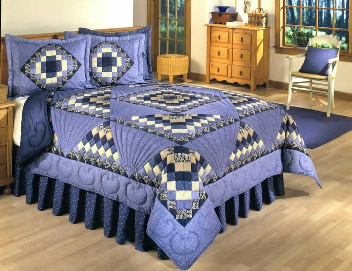 Die Steppdecke ist das beliebteste Patchwork-Objekt, besonders für Anfänger und Handwerker.Eine Decke in diesem Stil kann verschiedene Muster und Ornamente haben oder spezifische Objekte darstellen, alles hängt von der Technik und der Vorstellungskraft des Meisters ab.