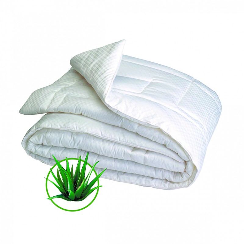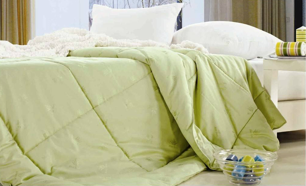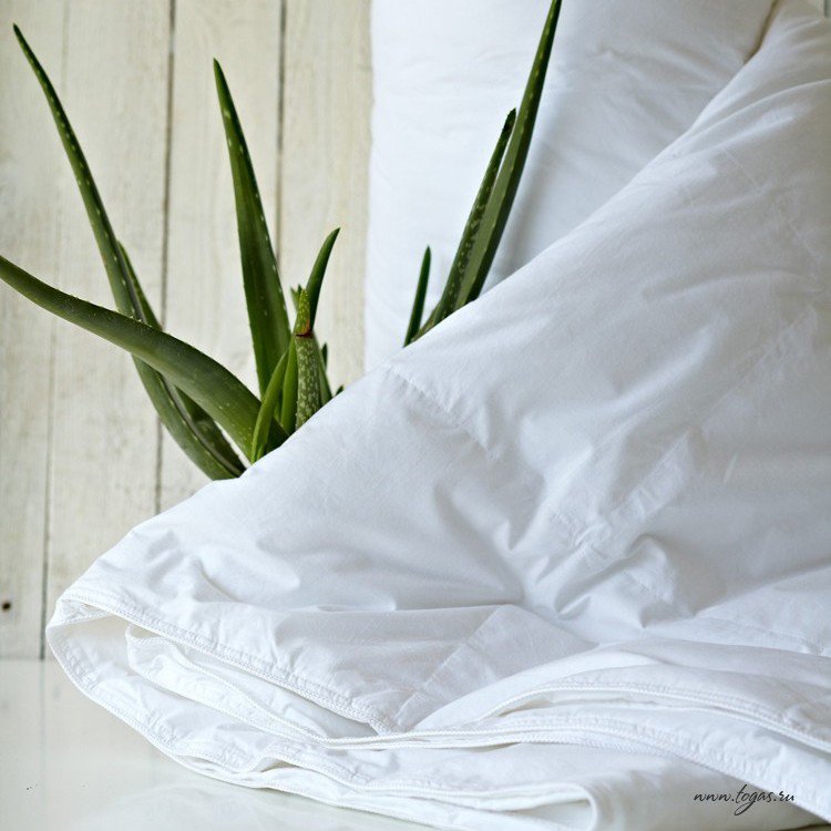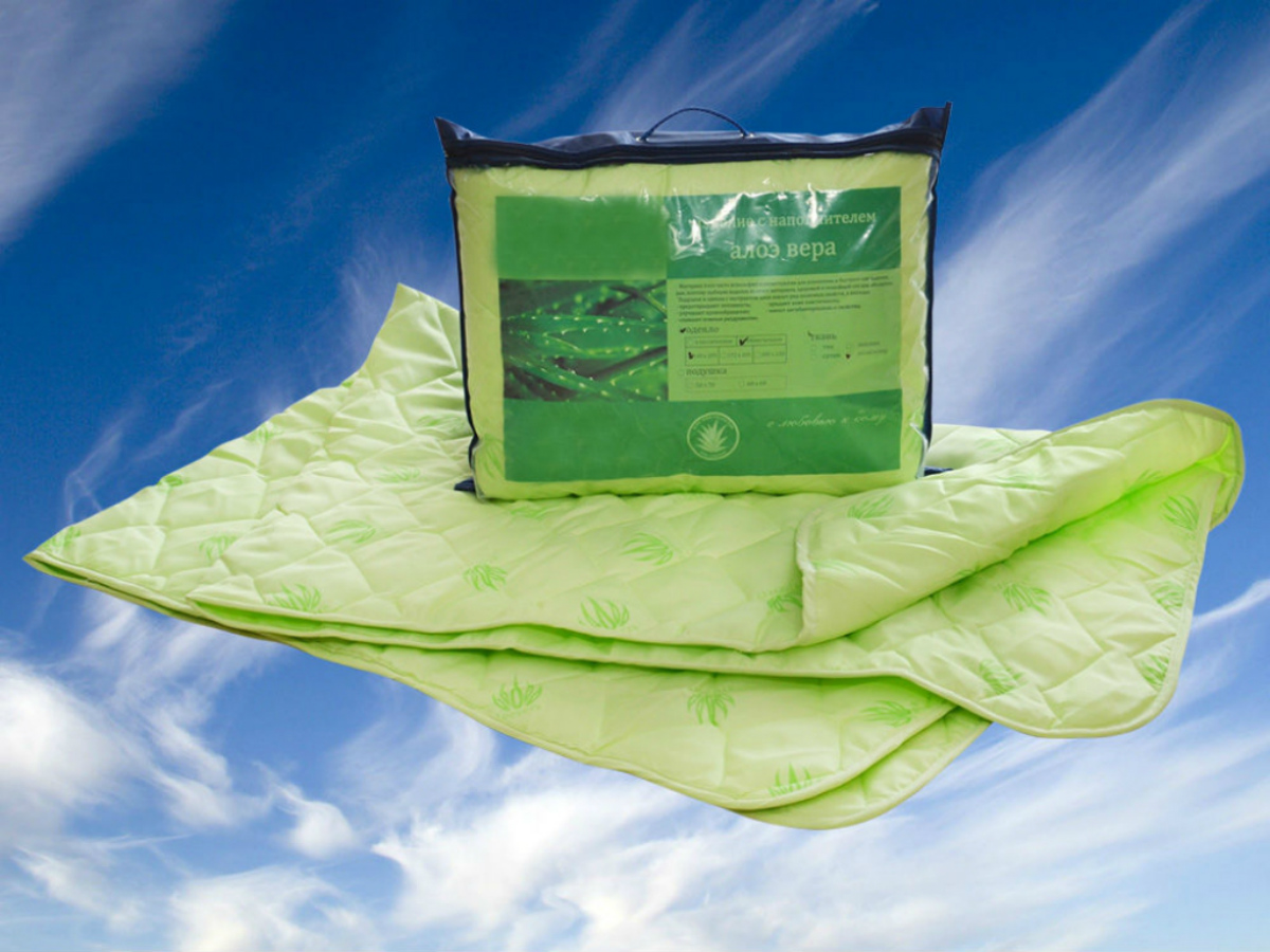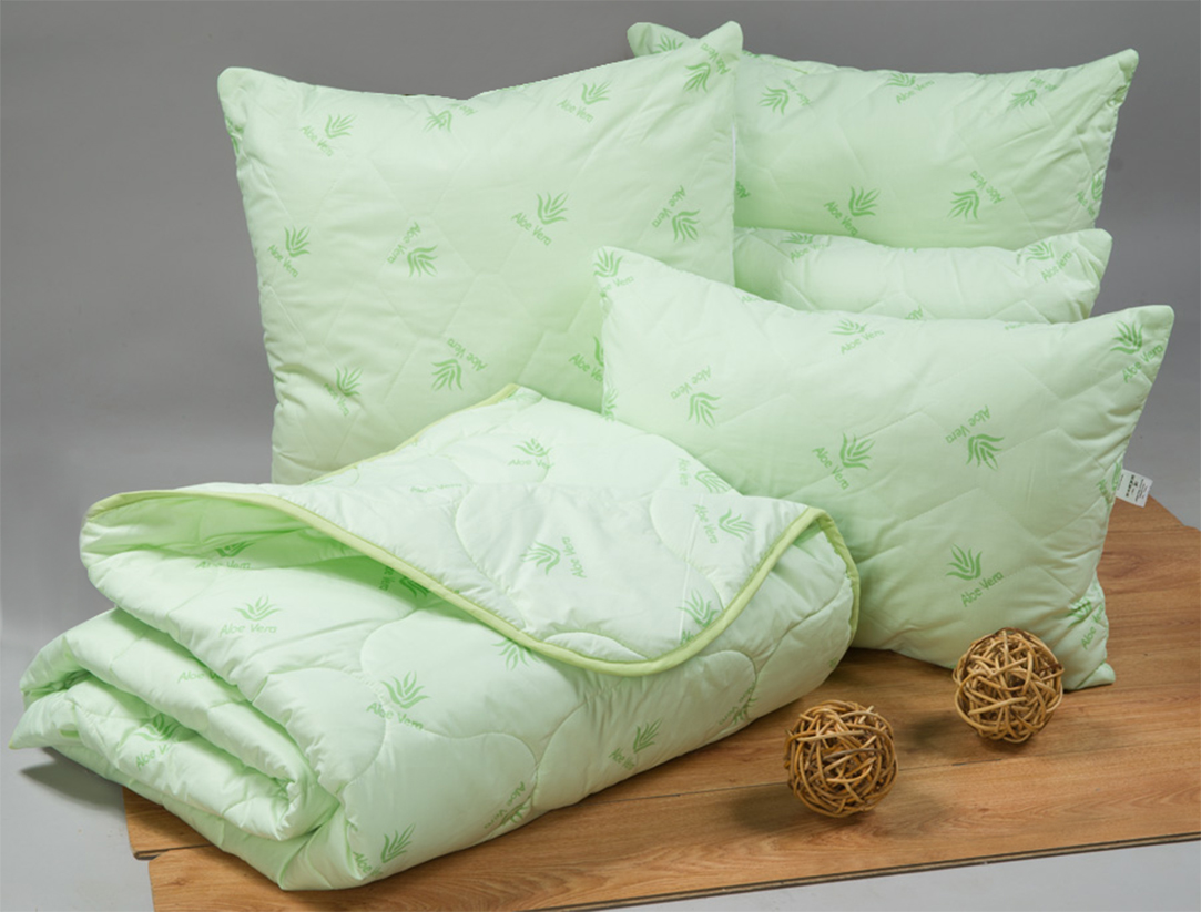 In solchen Fällen sollten Sie auf synthetische Optionen für Füllstoffe mit dem Zusatz einer Schicht von solch einer unbezahlbaren Pflanze, wie Aloe Vera, achten. Imprägnierung von Aloe macht eine synthetische Decke nicht nur hypoallergen, sondern auch vorteilhaft für die menschliche Gesundheit.