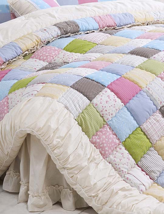 - Patchwork. Patchwork Quilts werden aus verschiedenen Stoffteilen hergestellt. Solche Modelle werden meistens manuell hergestellt. Sie sehen besonders gemütlich und wohnlich aus. Die Eigenschaften der Praktikabilität hängen von der Qualität der Nähte und des Herstellungsmaterials ab.