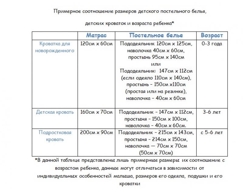 Der Größenbereich für Kinder bestand zunächst aus zwei Parametern: 75 x 100 und 100 x 150 cm, heute sind diese Dimensionen vielfältiger, der Bereich der Kategorieparameter unterteilt sich in Säuglinge (Kleinkinder), Kleinkinder, Vorschulgruppen, Schulkinder und Jugendliche.