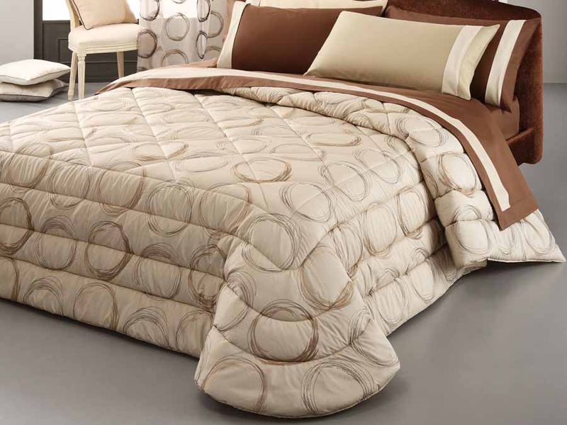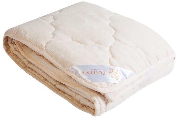 - "Ökotexte" - geschlossene gesteppte Modelle von eineinhalb, doppelten und europäischen Größen mit den Budgetkosten eines leichten und standardisierten Plans aus Bambus und Mikrofaser DownFil, Kamel und Merinowolle, ausgestattet mit einem Baumwolletui aus Teak, Popeline, Satin-Jacquard, Perkal, getränkt mit Aloe Vera Extrakt.