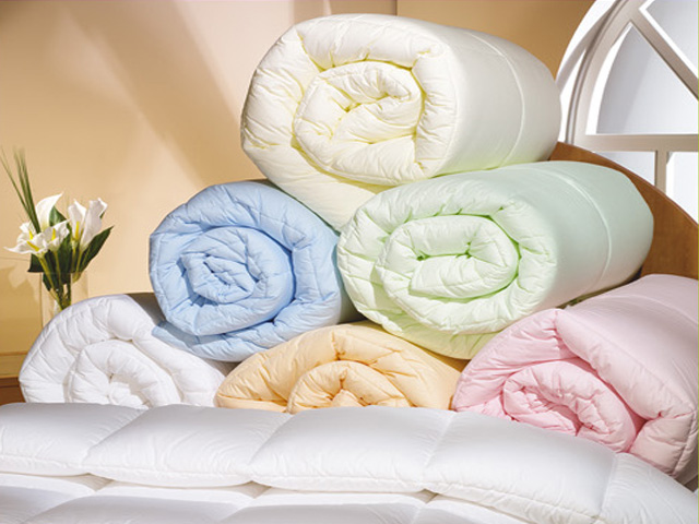 - Primavelle - hypoallergene Modelle für verschiedene Jahreszeiten Flaum (einschließlich Schwan), Wolle, Bambus, Ecofiber, Seide, Phyto-und synthetischen Füllstoff Standard-Größen für Erwachsene auf einer Hälfte, Doppel-und Eurocrop, in Baumwollbezüge in angenehmen Farben verpackt.