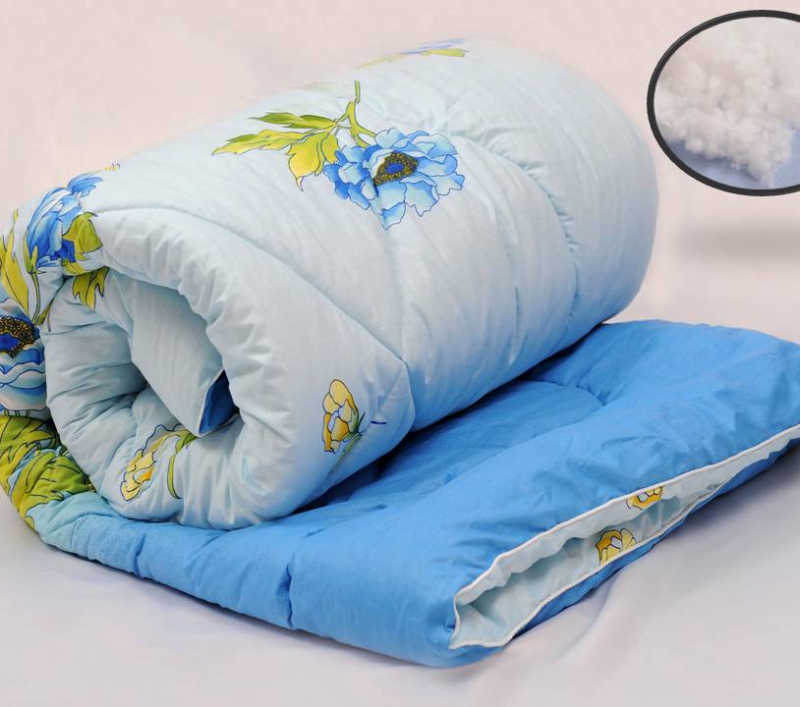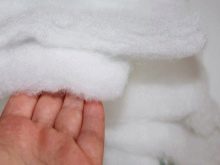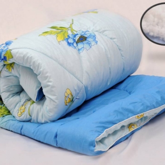 Aber selbst eine solche Verarbeitung während des Herstellungsvorgangs verhindert nicht das Auftreten von Klumpen bei längerem Gebrauch einer Decke mit einem Polsterungspolyester. Im Vergleich zu Hollow Fiber werden Produkte mit diesem Füller viel schneller verformt. Fasern streuen an einer Stelle und es ist fast unmöglich, das ursprüngliche Aussehen auf die Decke zurückzubringen.