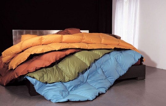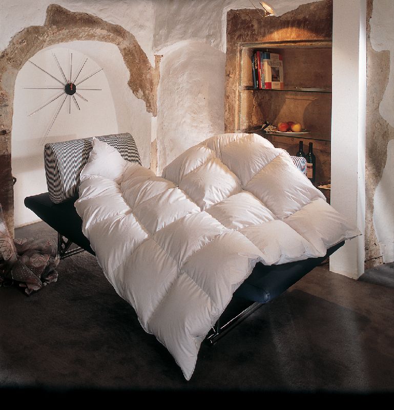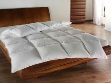Doppeldecken sind auch bei Käufern sehr gefragt. Die Standardgröße der modernen Modelle beträgt 220 x 220 cm, die Decke hat ziemlich beeindruckende Parameter und ist daher ideal für zwei.