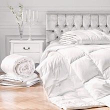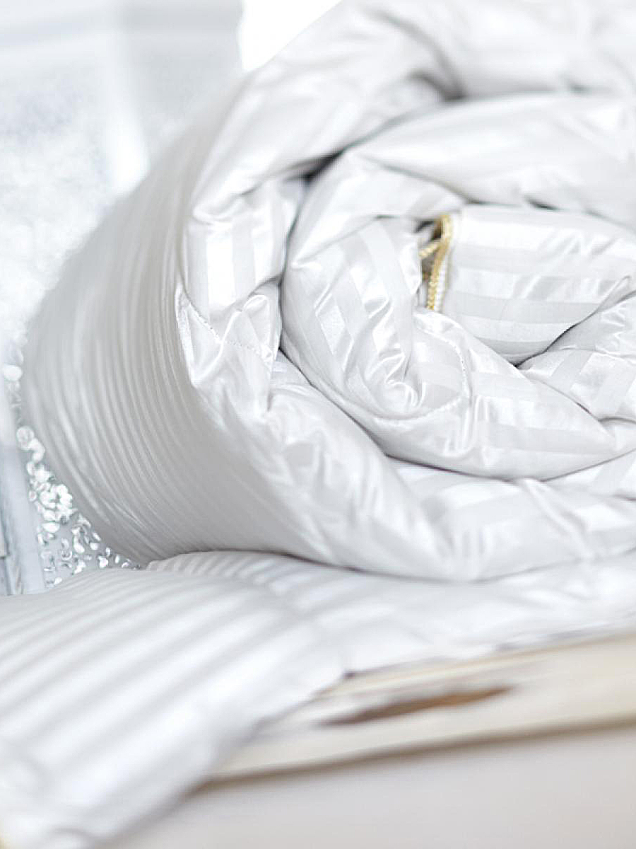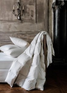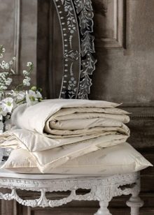- Fluff ist der beliebteste Füllstoff. Die Firma Togas verwendet ausgewählte flauschige Daunen der nördlichen Gänserasse. Ein solches Material ist in der Lage, während des Schlafes eine wärmeisolierende Hülle zu bilden, die trotz der Umgebung Wärme speichert. Flaum ist leicht und schwerelos. Sie sind froh, zu jeder Zeit des Jahres zu verstecken. Eine Decke aus Flusen hilft, den Treibhauseffekt zu vermeiden, da sie die Feuchtigkeit, die der Körper während des Schlafes freisetzt, perfekt absorbiert. Die Bettdecke nimmt leicht die Form eines Körpers an und wird leicht zusammengedrückt. Es wird meistens für die Sommerzeit gewählt.