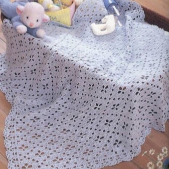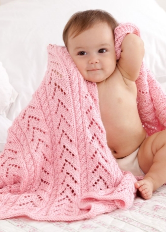 Decke für Kinder, von Hand gefertigt - eine praktische und schöne Sache. Openwork-Optionen sind am häufigsten auf Decken für Kinder gefunden. Sie überraschen mit der Anzahl und Vielfalt der Spieltechniken.Sehr schöne Lochmuster werden mit Offset-Schleifen, sowie Zöpfen aussehen. Wellenförmige oder Zickzack-Muster verleihen der Babydecke Zartheit und Leichtigkeit.