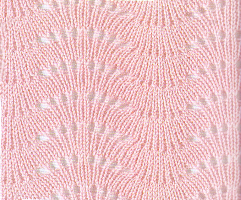 196 Schlingen werden mit Nadeln gestrickt, Stricken geht auf der Vorderseite (ab der 12. Reihe, stricken nach dem geernteten Muster). Zwei Linien sind horizontal angeordnet, gefolgt von zwei Linien vertikal, von den Kanten sind sie mit einer vorderen Satinlinie von 10 Schleifen gestrickt.