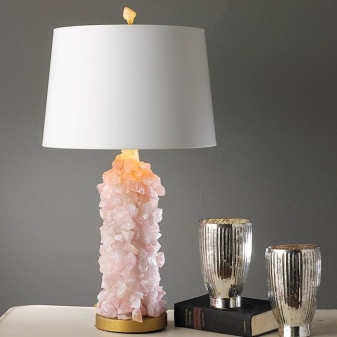 - Die Einführung der Lampe in den Kristall. Schöne und ungewöhnliche Modelle von Schreibtischlampen, die mit einem großen Kristall hergestellt wurden. Es kann sowohl natürlich als auch aus künstlichen Materialien bestehen. Dieses Modell wird interessant sein, in jedem Raum zu suchen und interessante Blendung an den Wänden zu werfen.