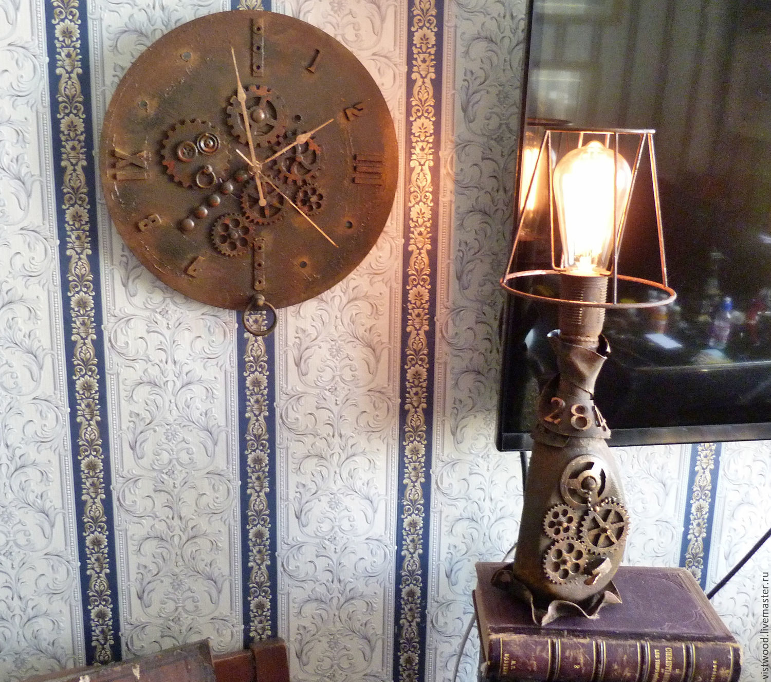 - Mit der Verwendung von zusätzlichen Elementen. In diesem Fall wird die Lampe nicht von Grund auf neu geschaffen, sondern mithilfe eines großen Gegenstandes, bei dem es sich um eine Bronzestatuette oder eine Gipsfigur handeln kann. Mit Hilfe von Werkzeugen machen sie einen speziellen Kanal für den Draht und stellen eine Stehlampe oben drauf.