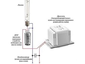 Metallhalogenidlampen werden nach den Regeln verbunden, da das Funktionsprinzip und die Konstruktion des Attributs seine eigenen Eigenschaften haben (es hat eine Spannungsabhängigkeit).Insbesondere erfordern diese Produkte die Einbeziehung eines strombegrenzenden Elements (PRA).
