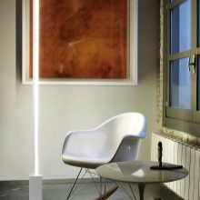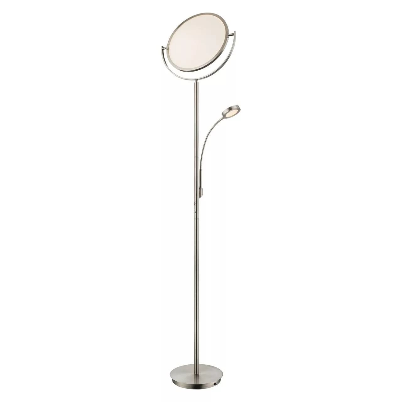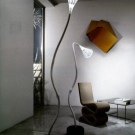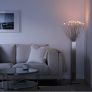 - Stehlampe "Ebro" im Wert von fast 21 Tausend Rubel, erhielt ausgezeichnete Bewertungen und Bewertungen von Käufern. Es erregt Aufmerksamkeit mit seiner ungewöhnlichen Optik und Design. Das Design ähnelt etwas Kosmischem, Alien und Mysteriösem. Die Höhe des Produkts ist beeindruckend, es ist 194 cm Der Durchmesser beträgt 31 cm Es braucht nur zwei LED-Lampen unterschiedlicher Leistung - 18 W und 4,5 W. Der Lampenschirm besteht aus matt weißem Acryl. Der Rest des Designs besteht aus gebürstetem, vernickeltem Metall. Der Schalter befindet sich auf der Basis, dh direkt auf dem Design der Stehleuchte. Beleuchtungsfläche beträgt 3 Quadratmeter.