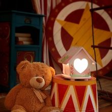 - Gerätefarbe sollte nicht zu hell oder aggressiv sein.Die gelbe Farbe ist optimal, da sie beruhigend auf die Psyche des Kindes wirkt. Es ist notwendig, auf die Dekoration der Nachtlampe zu achten. Nachtlampen in Form von Tieren oder animierten Helden eignen sich für ein Kinderzimmer. Diese Lampen sind die kreativen Elemente des Raumes während des Tages, die notwendigen Helfer - in der Nacht.
