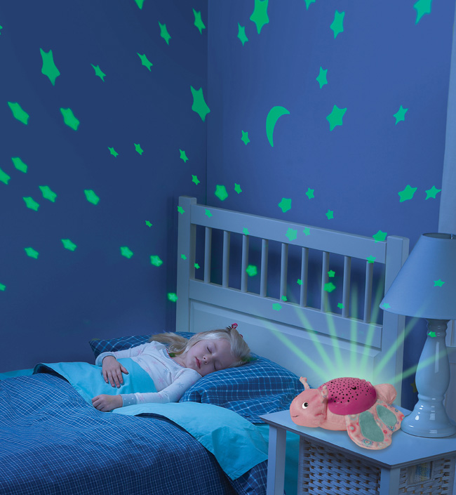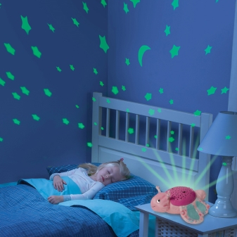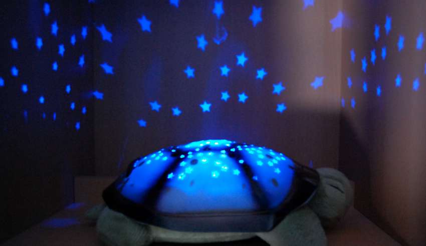 - Nachtlichtprojektor ist das modernste Aussehen. Es ist eine Decke, durch die verschiedene Zeichnungen und Figuren auf die Decke projiziert werden (meist der Sternenhimmel). Solche Bilder vor dem Schlafengehen beruhigen sowohl Erwachsene als auch Kinder. Heute gibt es viele interessante Optionen für solche Geräte.