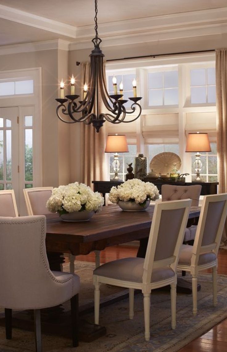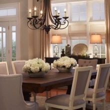 Die Deckenlampe sollte den Raum gut ausleuchten, deshalb ist es besser, hellere Glühbirnen zu wählen, als in einem kellerähnlichen Raum zu sein. Obwohl Kronleuchter und Kerzenleuchter an die Antike erinnern sollen, sollten Sie nicht wie im Mittelalter sein.