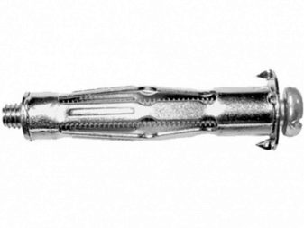 - Metallisch. Diese Art von Verschluss ist am haltbarsten, langlebig und praktisch. Dübel ist in der Lage, große Lasten (Hunderte von Kilogramm) leicht zu widerstehen.Sie sollten keine Angst haben, dass das Teil mit der Zeit rostig wird. Schließlich behandeln Hersteller das Produkt mit einer speziellen Verbindung gegen Korrosion. Die metallische Version hat jedoch ein Minus. Das sind seine ziemlich hohen Kosten. Aber wenn Sie den Preis mit allen Vorteilen eines solchen Kaufs vergleichen, dann sieht es nicht mehr so groß aus.