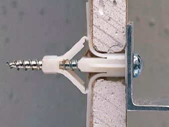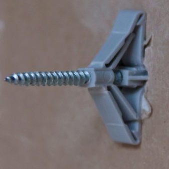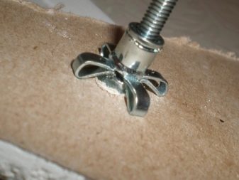 Drücken Sie dann den Schmetterling mit den Fingern und legen Sie ihn bis zum Anschlag in das vorbereitete Loch. Als nächstes befestigen Sie die Schraube der gewünschten Länge. So erhalten Sie ein zuverlässiges Design, das einer Belastung von nicht mehr als 16 Kilogramm standhält.