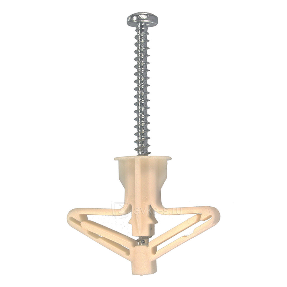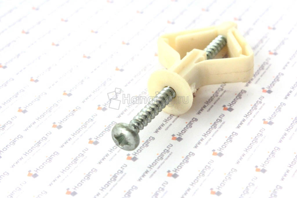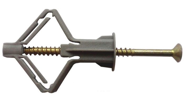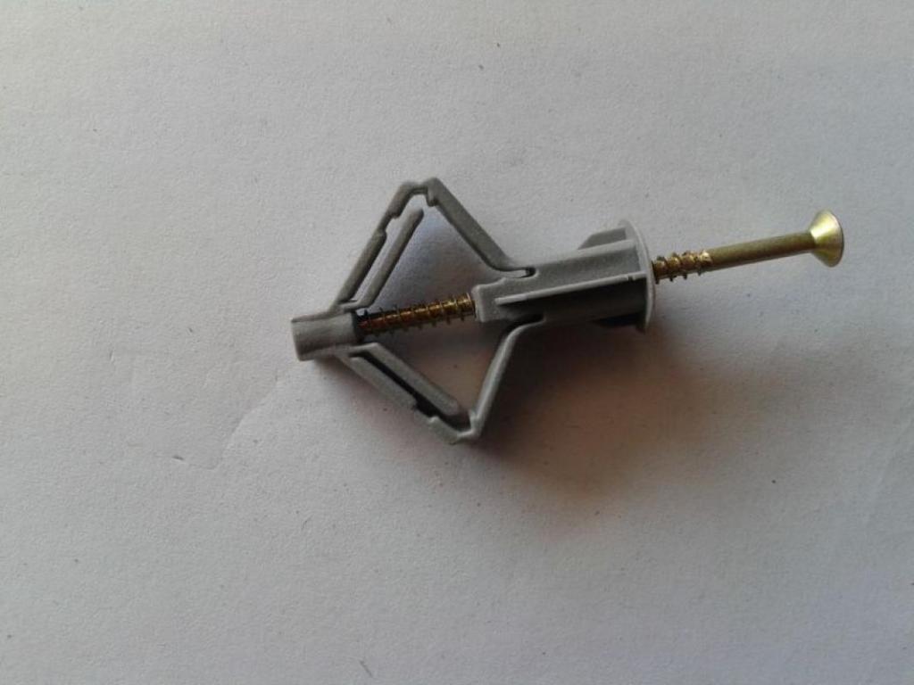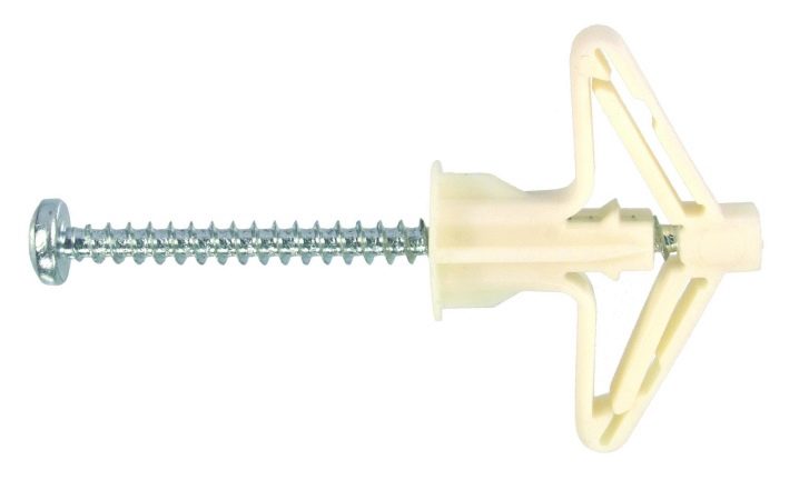 Es ist eine Schraube, ergänzt durch ein Kunststoffelement, das wie Schmetterlingsflügel aussieht.Es ist wegen dieses Verschlusses hat seinen Namen. Beim Verdrehen des Dübels werden die "Flügel" gerade gerichtet und fest gegen die Rückseite des Trockenbaubleches gedrückt. Dadurch wird die Belastung des Bleches gleichmäßiger verteilt. Dies reduziert das Risiko von Materialschäden während der Installation erheblich.