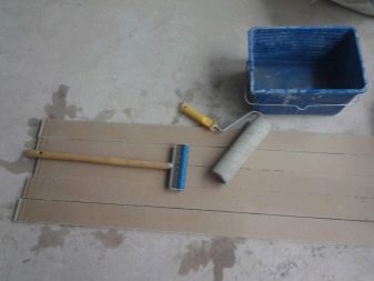 - Eine Schicht Trockenbau wird genommen und auf eine stabile Ebene gelegt. Wenn Sie einen konvexen Teil erstellen möchten, wird eine nadelförmige Rolle über die Rückseite des Blattes geführt. Wenn Sie eine konkave Form haben möchten, bearbeiten Sie die Vorderseite des Werkstücks.