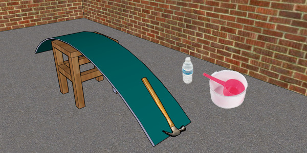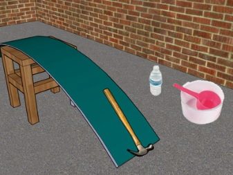Bleche mit einer größeren Größe müssen mit einer speziellen Walze und Flüssigkeit vorbehandelt werden. Danach fixiere das Fragment auf der Schablone, wo es unter seinem Gewicht die gewünschte Form annimmt. Innerhalb weniger Tage muss das Teil regelmäßig mit Feuchtigkeit versorgt werden. Aufgrund der Tatsache, dass der Prozess lang ist, wird diese Methode selten verwendet, oft bevorzugen einen Fräser oder Messer zu verwenden.