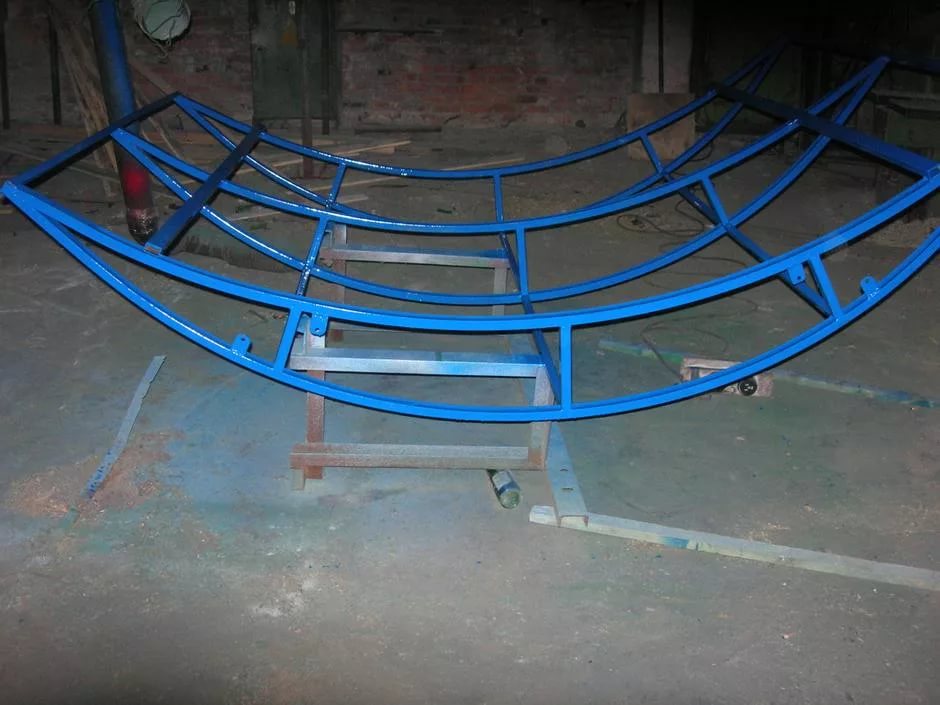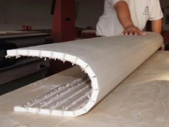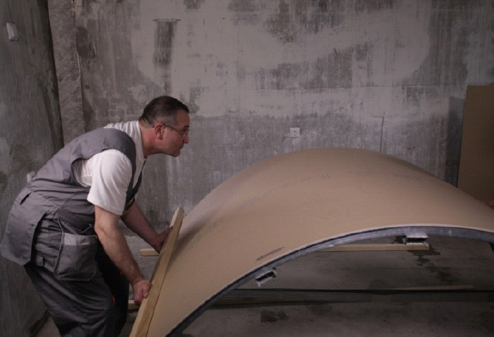 Zu Beginn der Vorarbeiten muss der Biegeradius bestimmt werden. Es ist sehr wichtig, dass das Endergebnis mit der geplanten Konstruktion übereinstimmt. Abhängig vom gewählten Radius wird die Dicke des in der Arbeit verwendeten Materials ausgewählt. Von einer dünnen Leinwand können Sie einen steileren Bogen machen.
