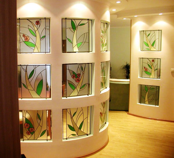 Diese zerbrechlichen Platten werden oft verwendet, um die kompliziertesten Ideen der Innenarchitektur umzusetzen. Dies trug zu ihrer Eigenschaft bei, eine Vielzahl von Formen anzunehmen, einschließlich des gekrümmten Typs. Letztere werden für verschiedene Zwecke verwendet.