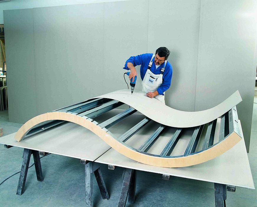 Vier Arten des Biegens von Trockenbauplatten überwiegen.
