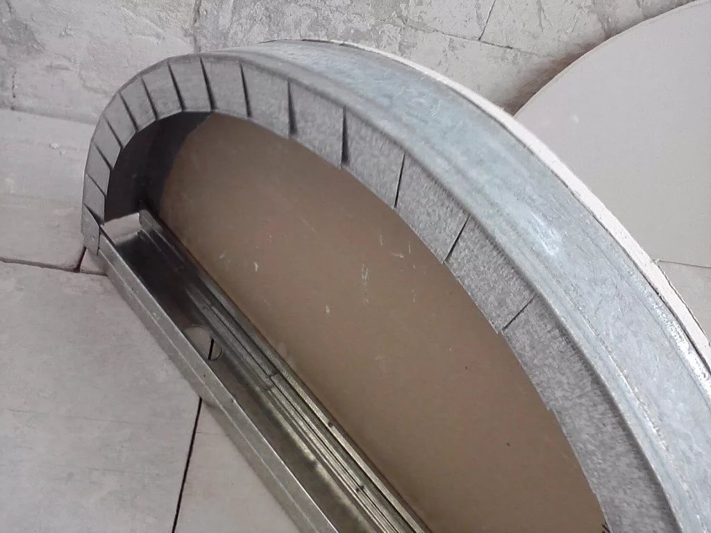 Um die Metallbasis zu biegen, ist es notwendig, das Profil zu durchtrennen. Bei der Herstellung einer flachen Kugel müssen die Schlitze in gleichem Abstand und parallel zueinander hergestellt werden.