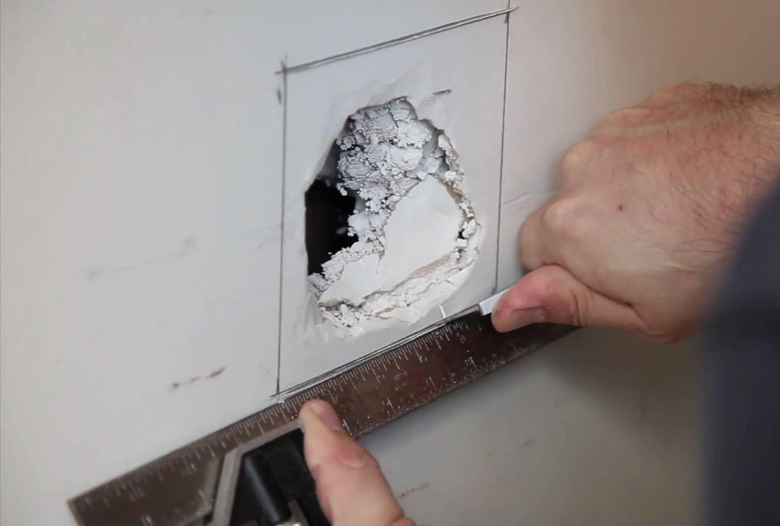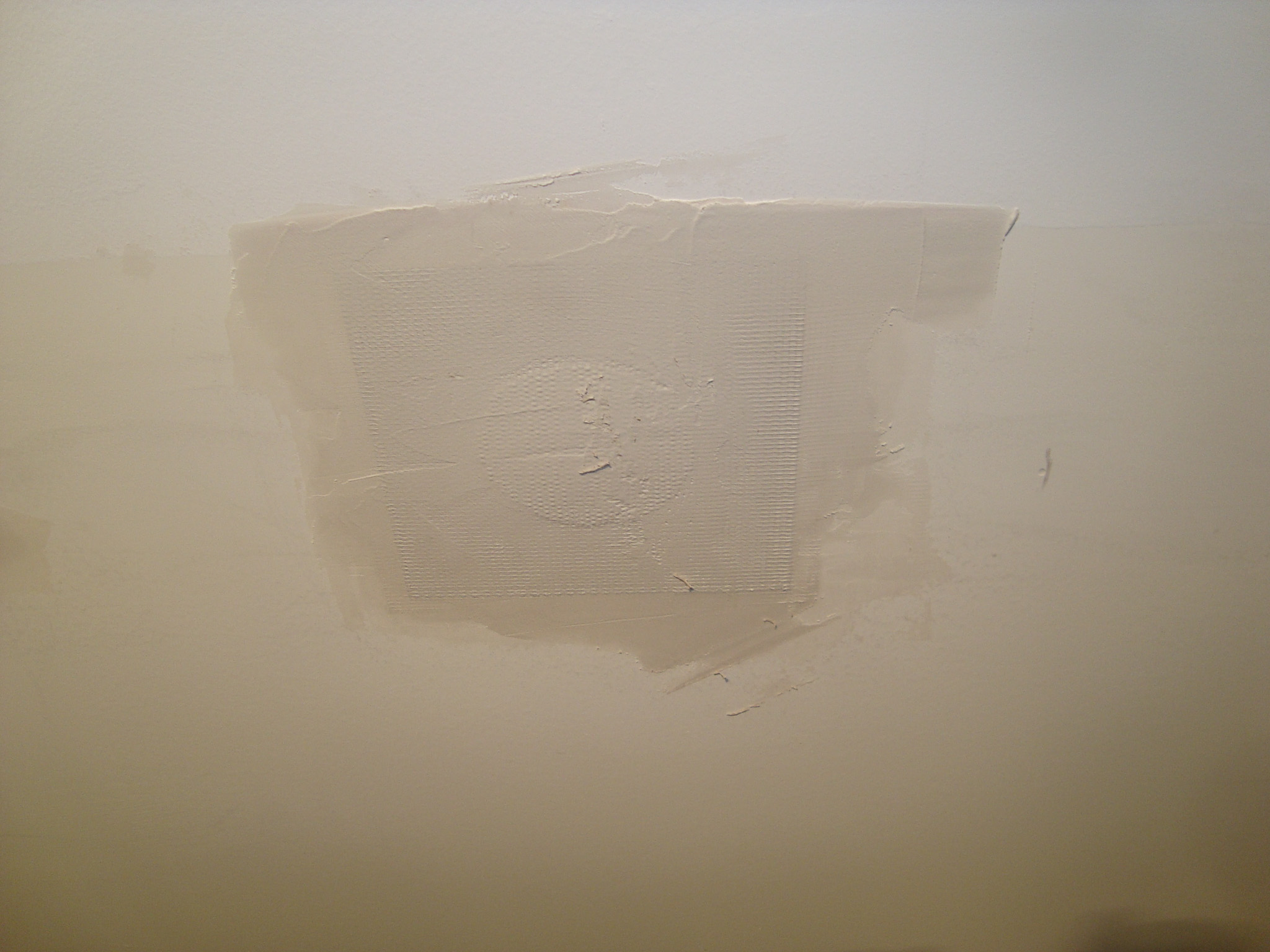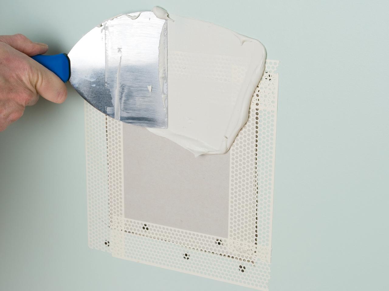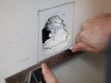 Im zweiten Fall wird ein Trockenbau-Patch verwendet, der an einer beschädigten Stelle geschnitten und installiert wird.