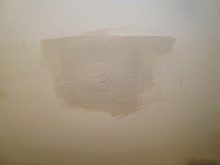 - Der Bereich, in dem sich das Loch befand, ist mit Tapeten bedeckt oder mit einem anderen Material bedeckt, so dass sich die Oberflächenbeschaffenheit nicht vom Hintergrund des intakten Ortes unterscheidet.