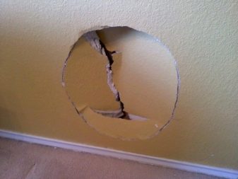 Wenn Sie beschädigte Bereiche reparieren, müssen Sie zuerst ihre Größe berücksichtigen.Die Gründe für die Bildung solcher Löcher können Massen sein, aber sie werden den Prozess ihrer Beseitigung nicht beeinflussen. Häufig treten Löcher häufiger in Wänden auf als an Decken.
