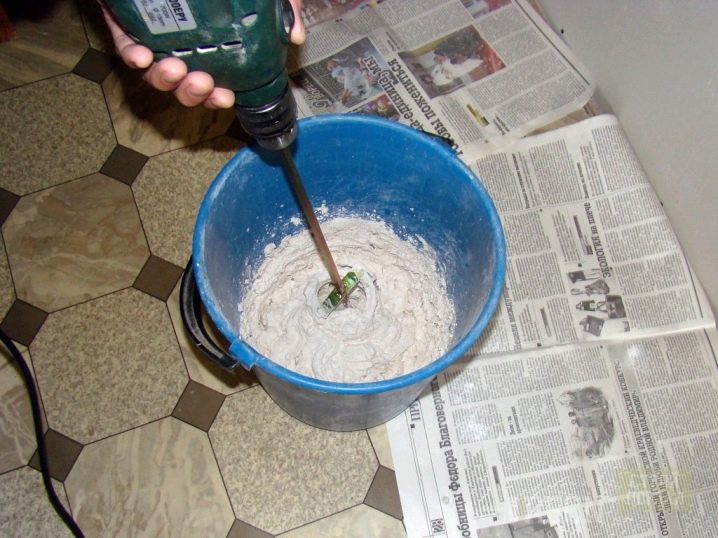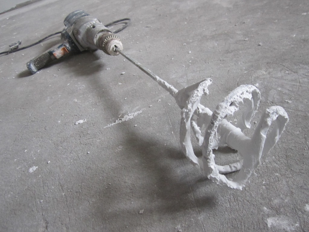 - Mischen Sie den Mörtel zu einer dicken Konsistenz mit einem Mischer.