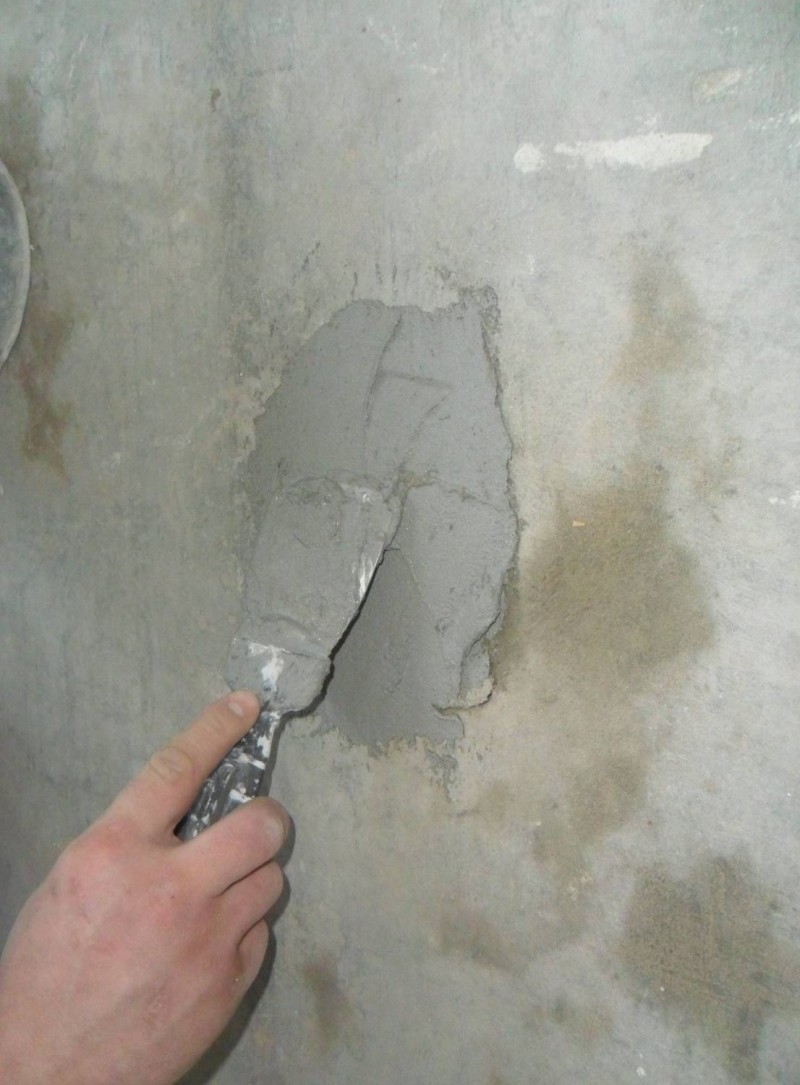 - Nachdem die erste Kittschicht ausgehärtet ist, müssen Sie die Aktion wiederholen,aber schon mit der Anwendung der Putzlösung auf den Bereich, wo es Schaden gab;