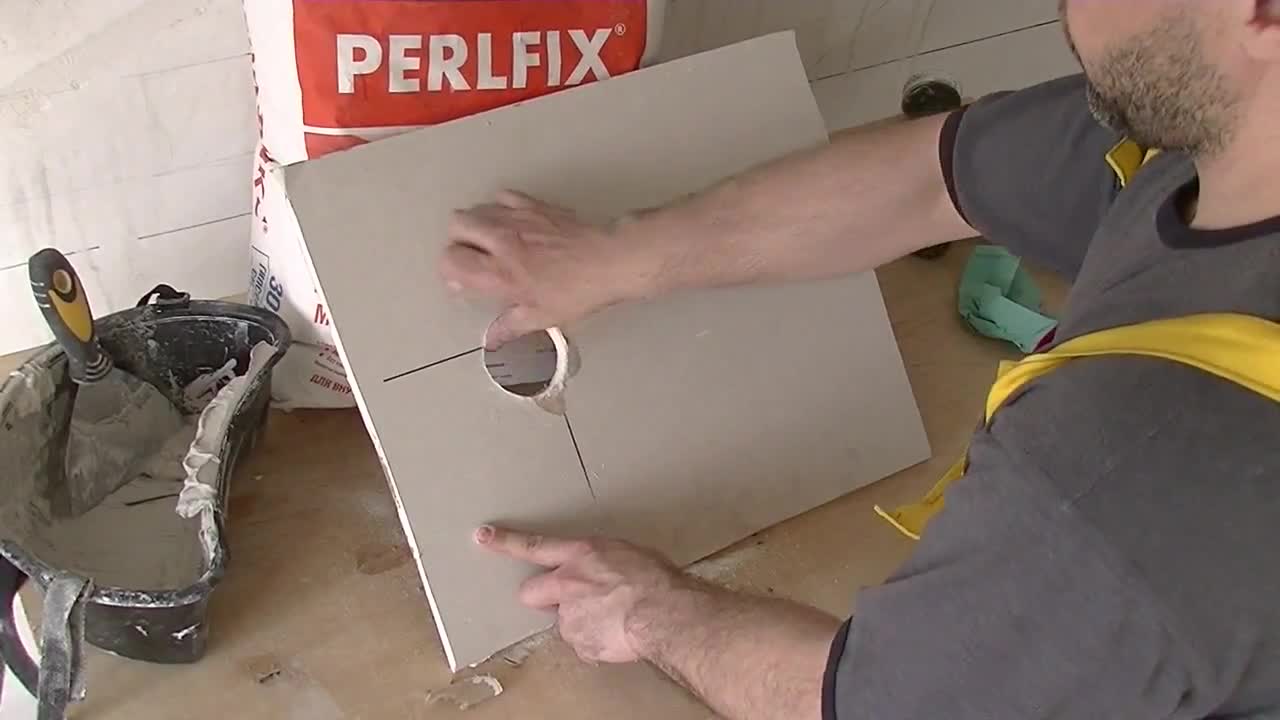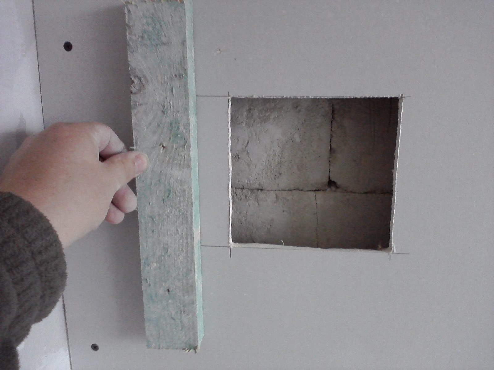 - Ferner wird auf einem zuvor hergestellten Trockenbaustück eine rechteckige Form gezeichnet, die den Parametern des geschnittenen Abschnitts entspricht.
