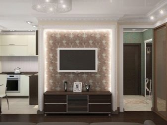 Es ist notwendig, sich dem Design kreativ zu nähern und auf jede mögliche Art und Weise darüber nachzudenken, was man als Ergebnis sehen möchte, um drinnen zu sehen. In der Regel ist die Hauptmöglichkeit, die eine Nische für TV bietet - versteckte Kabel. Aber es gibt Möglichkeiten, ein stilvolles Design zu entwerfen, das ein Highlight und Stil des Raumes geben wird.
