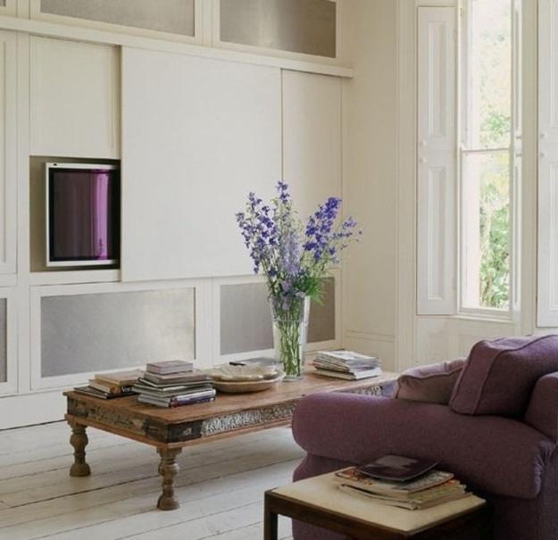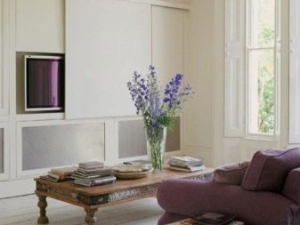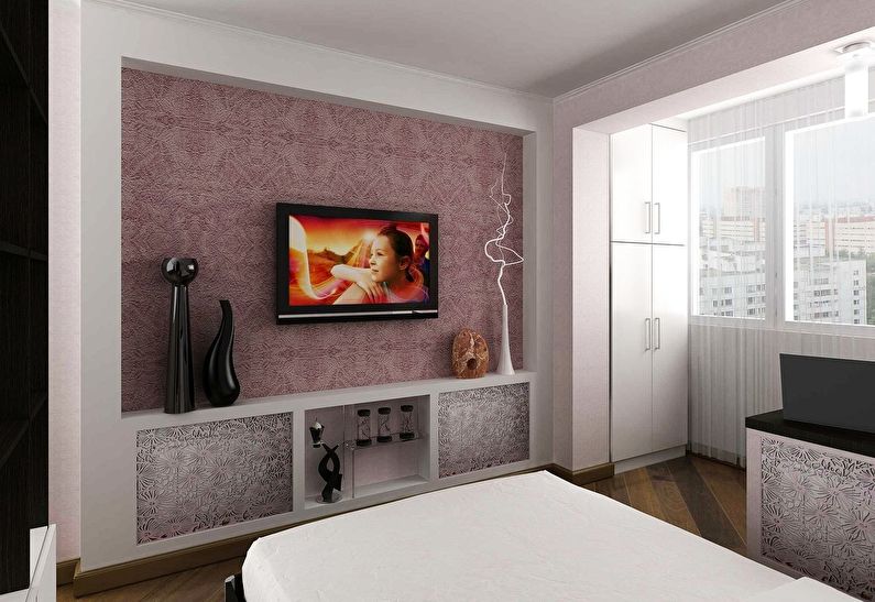 - Oft bauen Nischen das sind ähnlich wie Kleiderschrank. Der Fernseher befindet sich in diesem Fall hinter der Schiebetür.