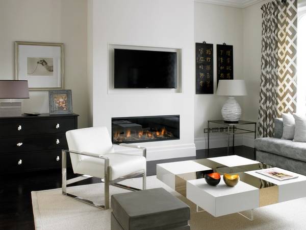 Unter dem TV kann auch dekorative Kamin installiert werden, keine andere Funktion als dekorative durchführen. Sie können auch einen elektrischen Kamin installieren, aber Sie sollten auf die Sicherheit achten.