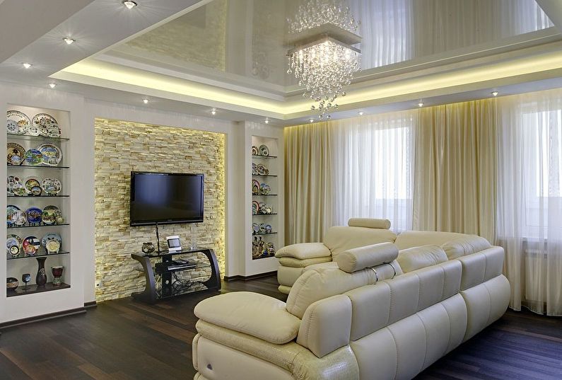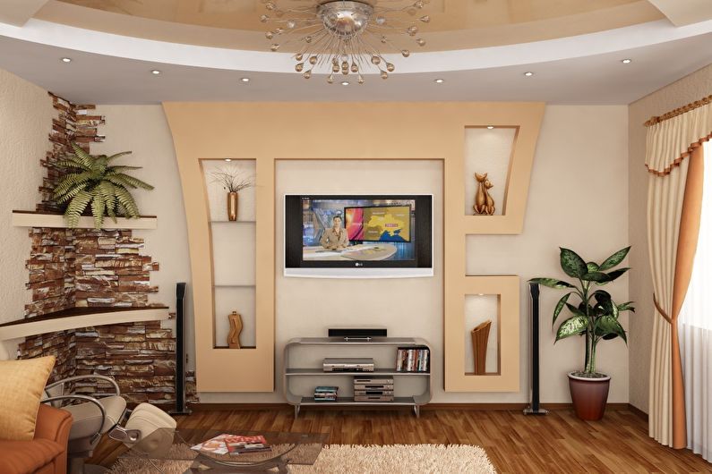 Gipskartonnischen für TV: Beispiele für Innenarchitektur