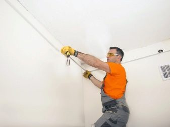 - Die Markierung der Arbeitsfläche. Um dies zu tun, sind an der Decke oder Wand markierte Linien Befestigungsführungen.Es ist wichtig zu berücksichtigen, dass die Befestigungslinie niedriger sein sollte als alle Unregelmäßigkeiten (wenn sie die Decke berühren). Dazu ist es bequem, die Regel zu verwenden.