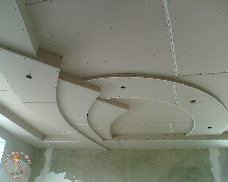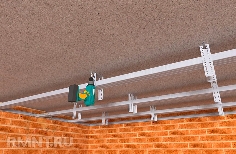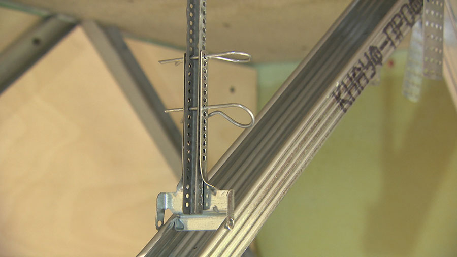 - Schaffung eines Rahmens für die nachfolgende Gipskartonplatte der Decke mit einer unebenen Oberfläche;