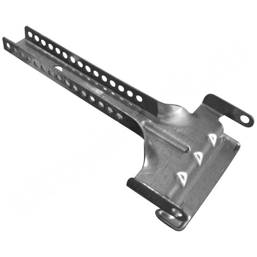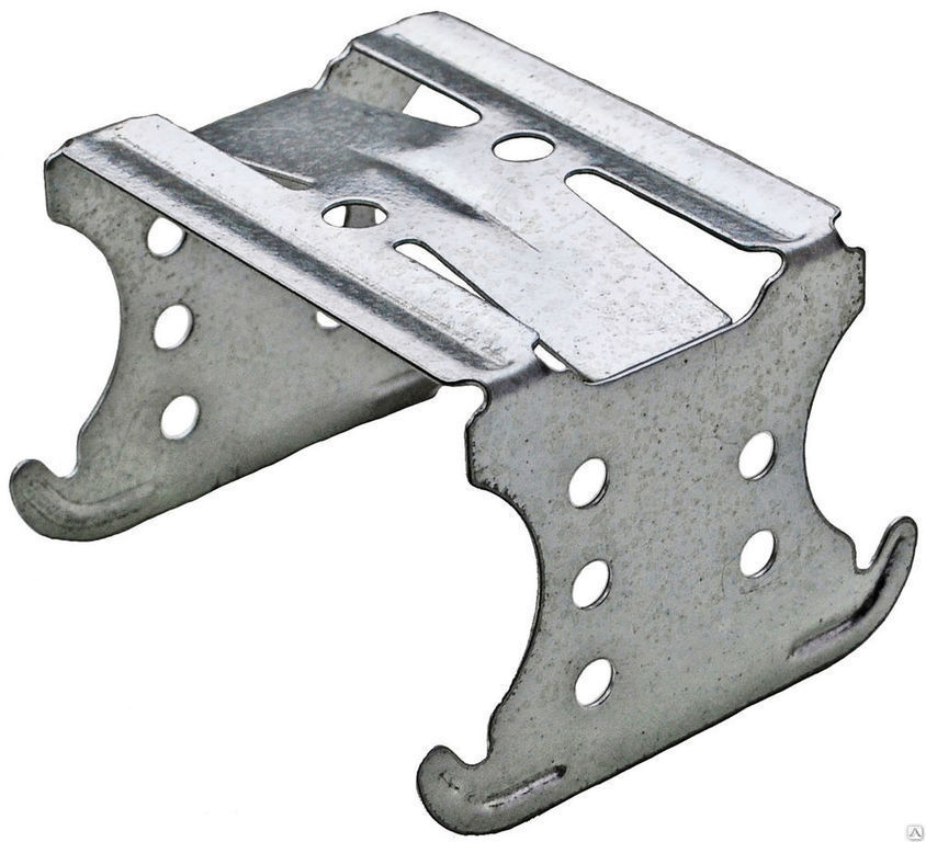 Wird zur Schalldämmung verwendet. Das Design dieses Teils enthält ein Federelement, das die Überlagerung von Schallwellen verhindert. Kann Belastungen von 15 bis 50 kg standhalten. Es wird sowohl für die Verkleidung von Gipskartonwänden als auch für die Decke verwendet.